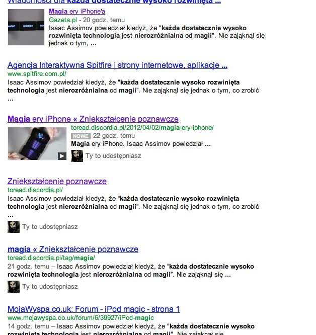 Walnąłem się w notce. Zdarza się. Wpisałem poszukiwany cytat do wyszukiwarki, zerknąłem na opis linka i przepisałem złe nazwisko. O magii i technologiach wcale nie mówił Asimov tylko Clarke. Głupio mi, ale to cenna nauka. Bo mówi sporo i o zaufaniu do Googla i o zagrożeniach, jakie ono ze sobą niesie.