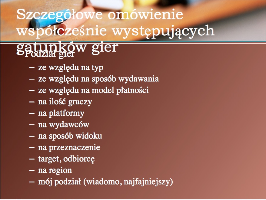 Stąd i wziął się mój pomysł na podział gier wszelakich, który po pierwsze – zawsze się sprawdza, a po drugie pokazuje, co tak naprawdę jest ważne. Nie przedłużając – już go wklejam na dole i nadmieniam tylko, że uważajcie się za szczęściarzy, bo inni żeby go zobaczyć musieli słuchać wcześniej trzy bite godziny czym się różni gra taktyczna od celowniczka. I dlaczego Free2Play to zło. Uwaga, leci.