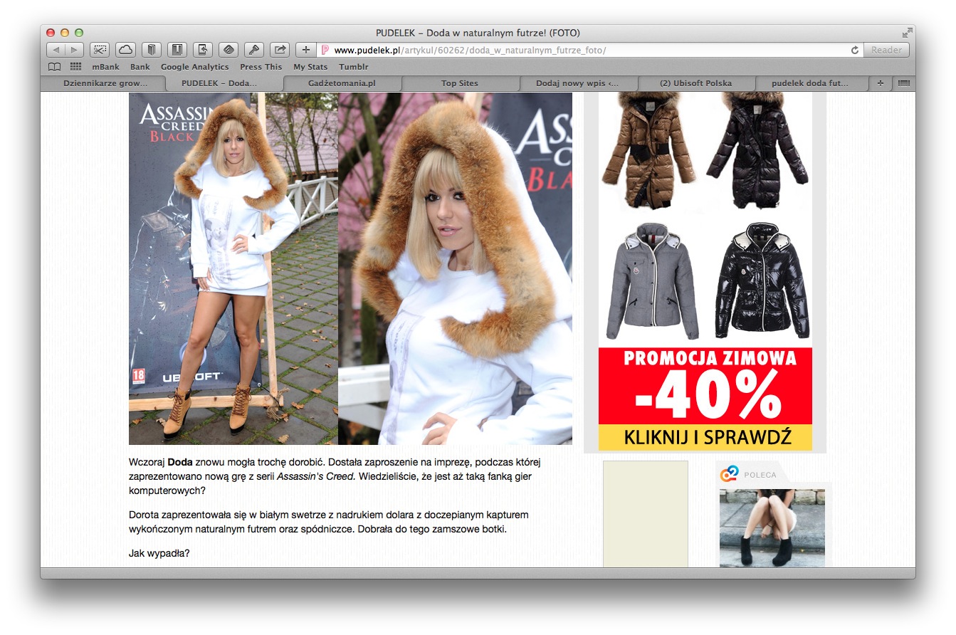 Na bardzo popularnym portalu plotkarskim pojawia się dzięki temu informacja o tym, że jest premiera gry. Ten portal czytają setki tysięcy ludzi, o ile nie miliony. To osoby, które nie mają pojęcia, że wychodzi taka gra jak Assassins Creed 4. A po lekturze artykułu mogą się dowiedzieć, że: