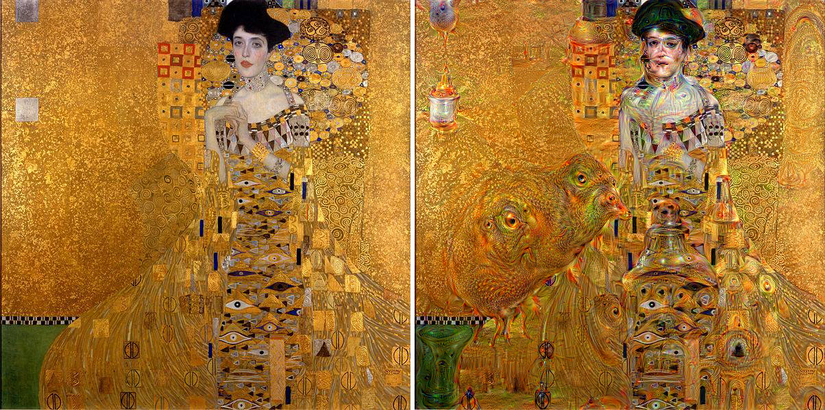007 Published 14 lipca 2015 at 1204 × 599 in Klasyczne obrazy widziane oczami sieci neuronowej Google’a Portret Adele Bloch-Bauer